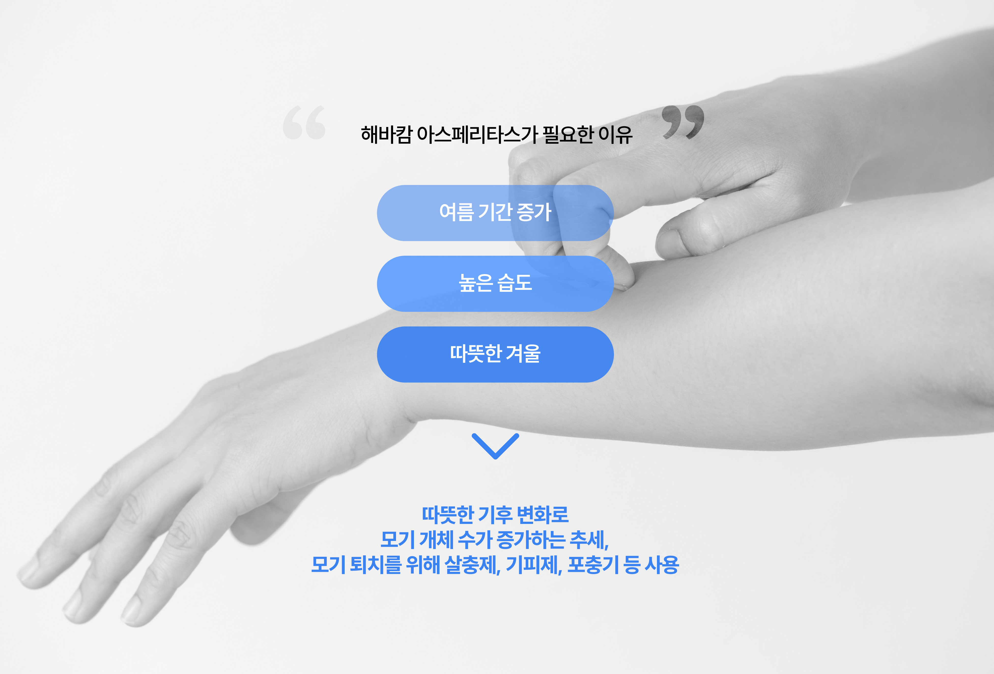 우리들은 모기 퇴치를 위해 살충제, 기피제, 포충기 등을 사용해왔습니다.